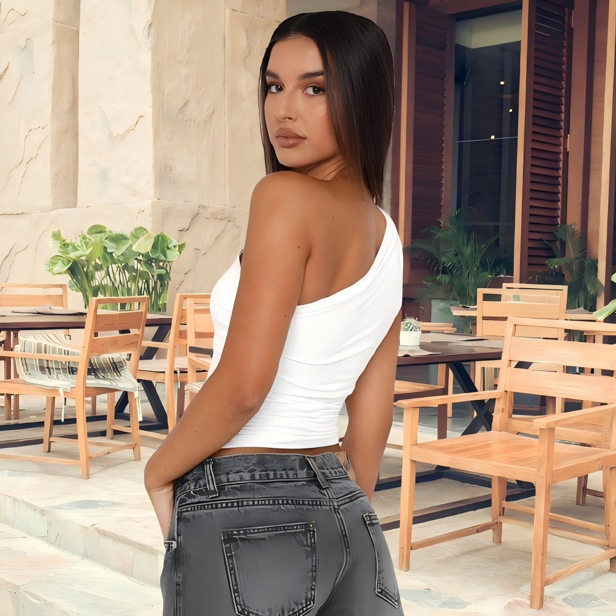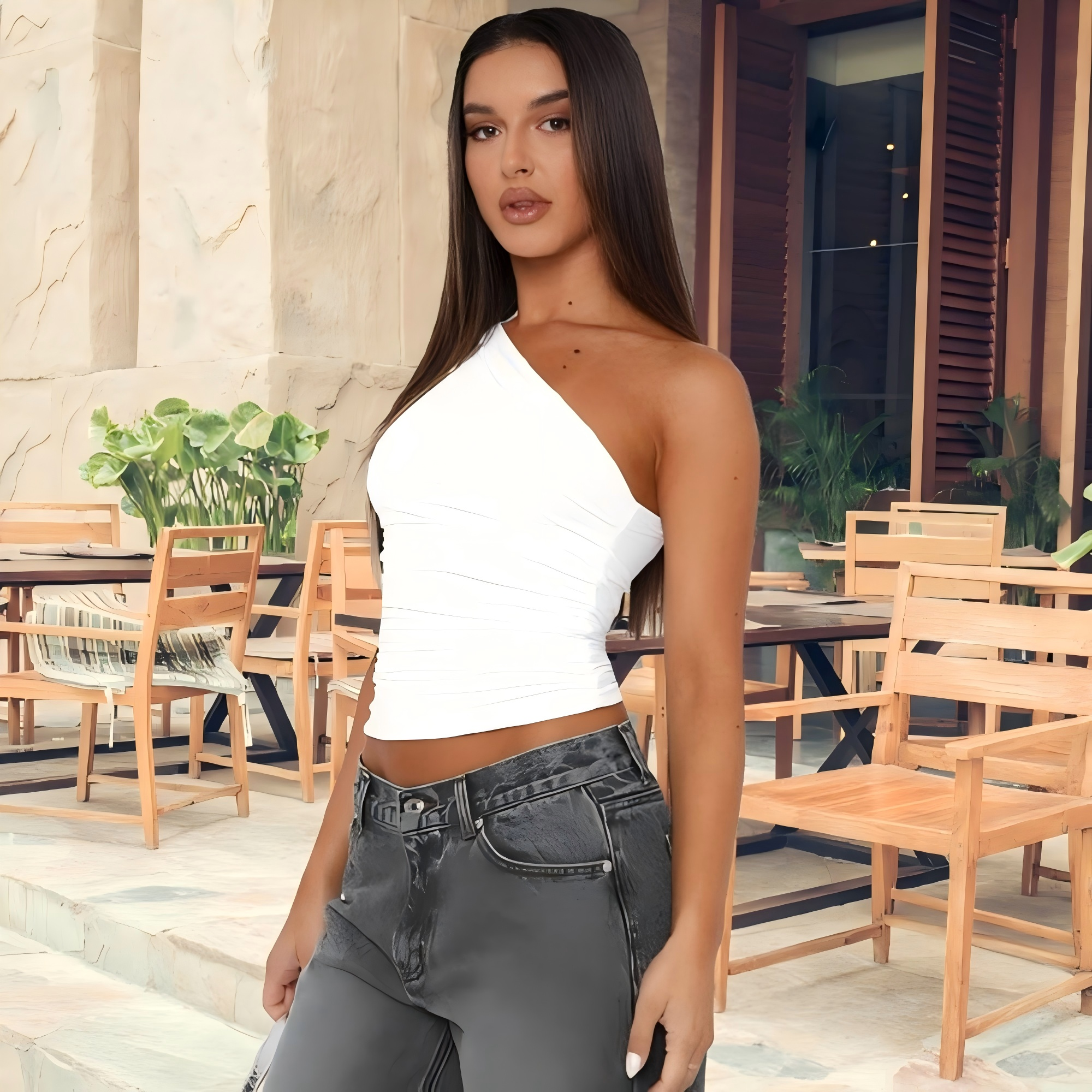 One shoulder pleated T-shirt White